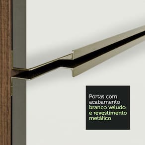 Desenvolvido com materiais de alta qualidade, possui portas com revestimento em metal, puxadores em alumínio e dobradiças com amortecimento. Esses detalhes prolongam a durabilidade do móvel.