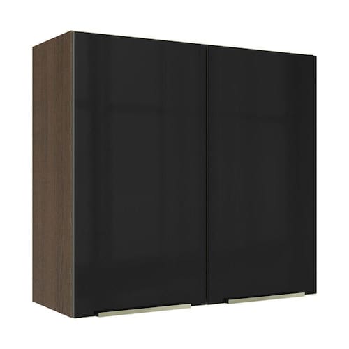 O móvel é desenvolvido com materiais de alta qualidade, como puxadores em alumínio e dobradiças metálicas. Um grande destaque é que ambas as portas recebem um vidro preto aplicado, diferencial que traz muita sofisticação e moderniza o ambiente.