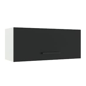 Armário Aéreo Madesa Agata 80cm 1 Porta Basculante Branco e Preto