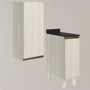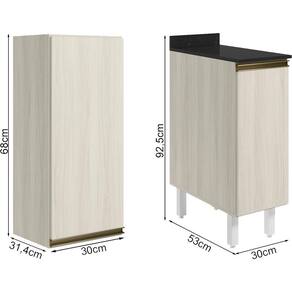 Conjunto de Armário Aéreo e Balcão com Tampo para cozinha, funcional e moderno, ideal para composições que otimizam o espaço com elegância. Fabricado 100% em MDF, com estrutura e tampo de 15mm e forro de fundo de 3mm, o conjunto é composto por 1 armário aéreo com 1 porta com dobradiças de 35mm com amortecedor, que garantem fechamento suave e silencioso, além de um puxador em perfil de alumínio, e 1 balcão com tampo que conta com 1 porta, 1 prateleira interna, puxador em perfil de alumínio e 4 pés com altura de 15,5cm e regulagem adicional de 1,5cm, assegurando estabilidade em diferentes tipos de piso. Estes móveis chegarão em sua casa separados em 05 volumes.