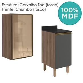 Conjunto de Armário Aéreo Porta em Vidro e Balcão com Tampo para cozinha, funcional e moderno, ideal para composições que otimizam o espaço com elegância. Fabricado 100% em MDF, com estrutura e tampo de 15mm e forro de fundo de 3mm, o conjunto é composto por 1 armário aéreo com 1 porta com frente em vidro reflecta em perfil alumínio com dobradiças de 35mm com amortecedor, que garantem fechamento suave e silencioso, 1 prateleira interna, e 1 balcão com tampo que conta com 1 porta, 1 prateleira interna, puxador em perfil de alumínio e 4 pés com altura de 15,5cm e regulagem adicional de 1,5cm, assegurando estabilidade em diferentes tipos de piso. Estes móveis chegarão em sua casa separados em 05 volumes.