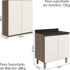 Peso Suportado do Balcão: 28Kg (20Kg tampo, 08Kg prateleira)