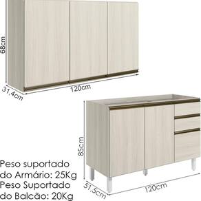 Peso Suportado do Balcão: 20Kg (12Kg gavetas e 8Kg prateleira)