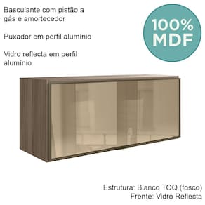 Armário Aéreo Basculante para cozinha desenvolvido para composições modernas e funcionais. Fabricado 100% em MDF, com estrutura de 15 mm e forro de fundo de 3 mm. Além disso, conta com pistão a gás com amortecedor, que garantem fechamento suave e silencioso, mantendo a porta aberta em um ângulo ideal e proporcionando mais conforto e segurança no uso diário. O puxador em perfil de alumínio completa o produto com um visual funcional e contemporâneo, enquanto o vidro reflecta traz um toque sofisticado e reflexivo, ampliando visualmente o ambiente com elegância. Este móvel chegará em sua casa separado em 02 volumes.