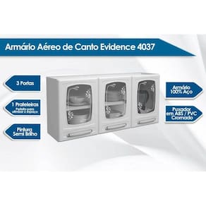CARACTERÍSTICAS DE MÓVEIS Tipo de Estrutura do Móvel - 100% Aço Tipo de Pintura - Pintura Epóxi Tipo de Acabamento da Pintura - Semi Brilho Características de móveis - Armário Aéreo - Armário Triplo Tipo de puxador - Puxador com Proteção UV - ABS / PVC Cromado Quantidade de Prateleiras - 1 Prateleira Quantidade de Portas - 3 Portas de Abrir Garantia - 3 Meses