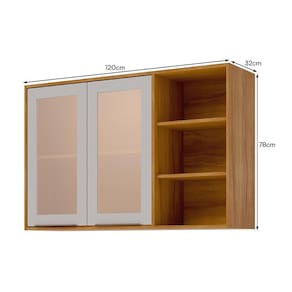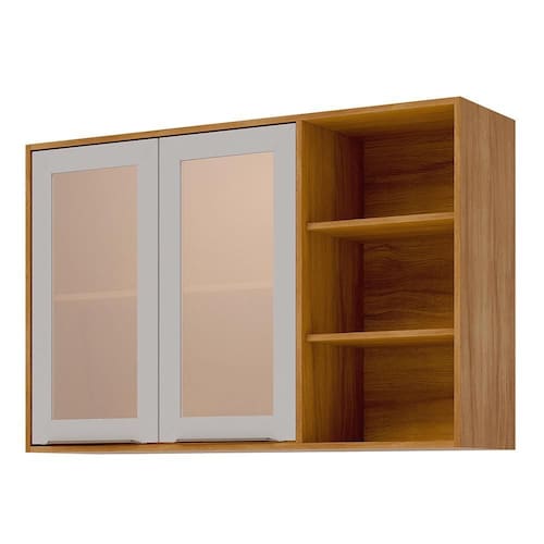 Armário Aéreo Brilhante 120cm 2 Portas com Vidro Reflecta e Nichos - MGM