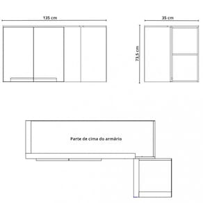 Dimensoes: Altura: 73,5 cm Largura: 135 cm Profundidade: 35 cm Peso: 36,38 kg