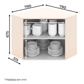 Armário Aéreo Canto Oblíquo 2 Portas Connect Off White Henn
