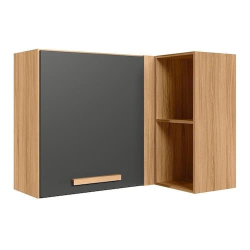 Armário Aéreo Canto Reto Intenza 88,5cm Freijó/chumbo Com Nichos - Nicioli Freijó/chumbo Armário Aéreo Canto Reto Intenza 88,5cm com Nichos - Nicioli O Armário Aéreo Canto Reto Intenza 88,5cm com Nichos da Nicioli possui estrutura em MDP e pintura UV, é ideal para aproveitar os cantos da cozinha com funcionalidade e estilo. Possui 1 porta com dobradiças metálicas, puxador em MDF e prateleira interna que auxilia na organização. Conta também com nichos laterais que agregam praticidade e um toque decorativo ao ambiente. Seu design moderno garante um excelente aproveitamento do espaço com amplo espaço interno. ESPECIFICAÇÕES: - Estrutura MDP - Pintura UV - 1 Porta - Dobradiças metálicas - Interna com prateleira - Puxador em MDF - Nichos laterais - Amplo espaço interno