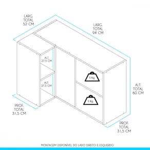 Dimensões do Balcão: Altura: 30 cm Largura: 80 cm Profundidade: 31,5 cm Peso: 10 kg