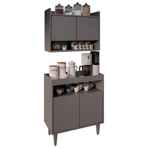 Prático e funcional, o Armário Aéreo Ceci e Balcão Aparador Buffet Lice M24 Grafite, da Mpozenato, é o que você precisa para deixar a seu espaço como sempre quis.