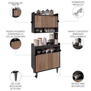 Armário Aéreo Ceci e Balcão Aparador Buffet Lice M24 Preto/Freijó - Mpozenato