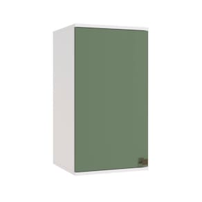 Acabamento: Pintura Brilho / Pintura Fosco | Acabamento da Fita Borda: Papel | Cor: Branco/Verde Oliva | Dobradiça: Com Amortecimento | Garantia: 3 meses para defeito de fabricação | Matéria-prima: MDF | Peso suportado por cada prateleira: 7 kg | Puxadores: Metálicos | Quantidade de portas: 1 | Quantidade de prateleiras: 1 | Sistema de montagem: Parafuso Philips | Tipo de porta: Bater | Materiais do corpo: MDF | Tipo de móvel: Armário