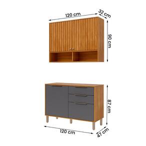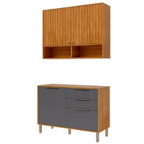 Armario Aereo com Balcão Divina 120cm com 4 Portas 2 Gavetas - Grafite