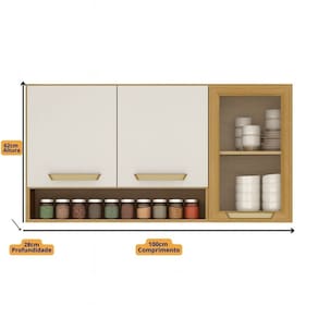 Elegante e funcional, o armário aéreo Adele com vidro reflecta destaca a composição da cozinha e facilita a visualização interna, sem abrir mão da discrição. O módulo traz portas bem acabadas, nicho/porta-temperos integrado para facilitar o preparo das refeições e prateleiras que ajudam a organizar louças e utensílios. O acabamento é resistente ao uso cotidiano e as ferragens garantem abertura e fechamento confiáveis. Recomenda-se instalação por profissional e verificação do suporte da parede. Acabamento da Prateleira: Pintura UV Escala de Brilho da Prateleira: Semi-Brilho Acabamento da Porta: Pintura UV Escala de Brilho da Porta: Semi-Brilho Material do Puxador da Porta: MDP Acompanha Rodapé Decorativo: Não Ambiente Principal: Cozinha codigo_ean: 7900288285003 Complexidade da Montagem: Alta: deve ser montado por um montador especializado Cor: Cinamomo/ Off White Acetinado Cor do Produto: Cinamomo/ Off White Acetinado Cor Interna: Cinamomo Escala de Brilho: Semi-Brilho Espessura do Material da Estrutura: 12 mm Itens Inclusos: 1 Armário Aéreo, Kit Ferragem e Manual de Montagem Linha ou Coleção: Adele Manual de Montagem e Instalação: https://product-hub-prd.madeiramadeira.com.br/329579527/documents/b40be6a4-868c-4f9d-8c8c-fc225c8aae323305842531917618717696047.pdf Marca: CHF Material da Dobradiça/Corrediça da Porta: Metálica Material da Porta: MDP Material da Prateleira: MDP modular: Sim Necessita Montagem: Sim Origem do Produto: Nacional Peso: 17,7 kg Peso Máximo por Prateleira: 8 kg Possui Espelho: Não Possui Possui Pés: Não Possui Portas: Sim Possui Prateleiras: Sim Possui Vidro: Sim Produto Montado: Sim Recomendações de Uso, Manutenção e Limpeza: Pano levemente umedecido e pano seco. Não utilizar produtos de limpeza. Sapatas Niveladoras: Não Sistema de Montagem: Parafusos e Cavilhas Suporta Até (kg): 30 kg Tipo de Dobradiça da Porta: Simples Tipo de Dobradiça/Corrediça da Porta: Simples Tipo de Puxador da Porta: Externo