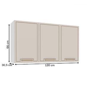 O(a) Armário Aéreo Cozinha 120 Cm Amara 3 Portas Branco/Creme - Politorno é produzido em MDF e MDP na escala de brilho Semi-Fosco, e possui um grau de dificuldade de montagem: Médio.