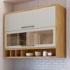 O(a) Armário Aéreo Cozinha 120 Cm Syrah 2 Portas com Vidro 100% Mdf Amêndoa/Off White - Rio Doce é produzido em 100% MDF na escala de brilho Semi-Brilho, e possui um grau de dificuldade de montagem: Fácil.