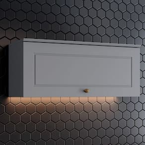 O(a) Armário Aéreo Cozinha 80 Cm Americana 1 Porta Basculante 100% Mdf Cinza - Henn é produzido em 100% MDF na escala de brilho Brilho e Fosco, e possui um grau de dificuldade de montagem: Médio.