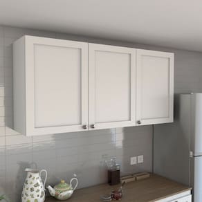 O(a) Armário Aéreo Cozinha Essenza 3 Portas 100% Mdf Branco Fosco - Loja é produzido em 100% MDF na escala de brilho Fosco, e possui um grau de dificuldade de montagem: Médio.