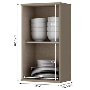 O(a) Armário Aéreo Cozinha évelin Duna/Cristal - Henn  é produzido em MDF na escala de brilho Fosco, e possui um grau de dificuldade de montagem: Médio.