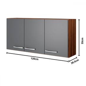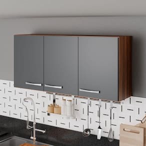 O(a) Armário Aéreo Cozinha Genebra 3 Portas Castanho/Cinza - Pnr Móveis é produzido em MDP na escala de brilho Fosco, e possui um grau de dificuldade de montagem: Médio.