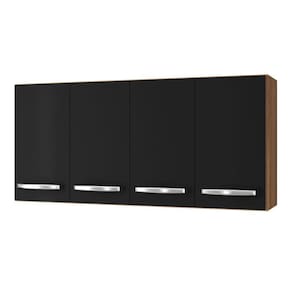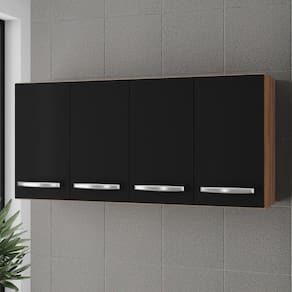 Armário Aéreo Cozinha Marah 118cm 04 Portas Savana Preto - Abmaza
