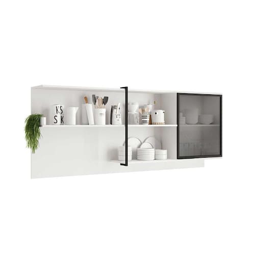 Armário Aéreo p/ Cozinha Alpha 2504 c/ 1 Porta c/ Vidro 200cm Branco - Carraro