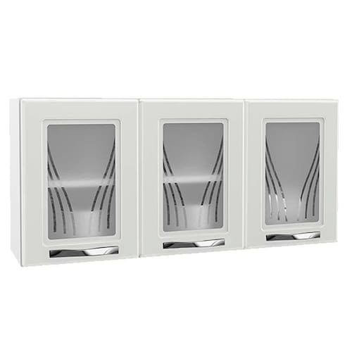 Armário Aéreo p/ Cozinha Star New 3 Portas c/Vidro 120cm Branco - Telasul