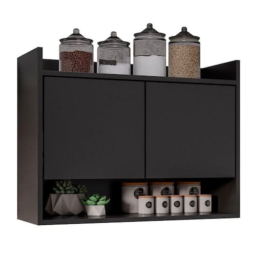 Armário Aéreo Cozinha Multiuso Cecília 70cm 02 Portas Preto - Abmaza