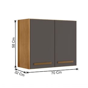 Armário Aéreo Cristal 2 Portas Arte Móveis Cinamomo/grafite O armário Aéreo Cristal é um produto prático e funcional, perfeito para guardar seus utensílios domésticos, deixando sua cozinha muito mais organizada, proporcionando maior comodidade e praticidade. Possui uma porta com pistão e nicho, bom gosto e qualidade com um toque de clareza. Altura: 58 cm Largura: 70 cm Profundidade: 32 cm Peso: 15 Kg
