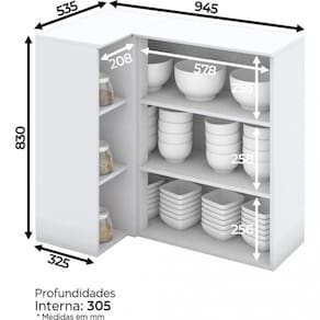 O Armário Aéreo para canto reto da Henn traz um design contemporâneo, compondo a Cozinha Americana que embeleza qualquer ambiente. Seu conceito é inspirado nas clássicas cozinhas estilo americano, oferecendo uma decoração moderna e minimalista. Com ela, você vai ter uma cozinha branca repleta de charme e elegância.