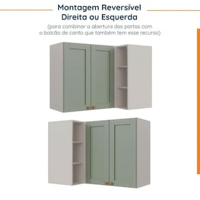 O Armário Aéreo de Canto Reto Arizona é um móvel com um design contemporâneo inspirado no estilo americano. Com sua caixaria fabricada em MDP e acabamento em pintura UV, mais a combinação das portas em MDF com Finish Foil, torna este armário aéreo capaz de resistir ao uso diário, fornecendo durabilidade e um acabamento atraente ao móvel. Vale ressaltar que as fitas de borda em PVC e as dobradiças com amortecimento, conferem alta durabilidade e proteção, além de uma sensação de qualidade e conveniência com o fechamento “soft closing”. Ao ser projetado para encaixar no canto da cozinha, ele aproveita eficazmente um espaço que, de outra forma, poderia ser subutilizado. Isso é particularmente valioso em cozinhas, onde o espaço é frequentemente limitado. A presença de nichos decorativos adiciona elegância e sofisticação ao móvel, tornando-o não apenas prático, mas também uma peça de destaque na cozinha. Outra característica interessante deste armário é a montagem flexível, que permite escolher a opção direita ou esquerda, adaptando-se melhor ao espaço disponível da sua cozinha. Portanto, esse armário aéreo não apenas oferece uma solução prática para o armazenamento na cozinha, mas também agrega elegância e sofisticação ao ambiente. Acabamento da Prateleira: Pintura UV Escala de Brilho da Prateleira: Semi-Fosco Acabamento da Porta: Finish Foil Escala de Brilho da Porta: Fosco Material do Puxador da Porta: ABS Ambiente Principal: Cozinha codigo_ean: 7909903436745 Complexidade da Montagem: Alta: deve ser montado por um montador especializado Cor: Branco/Menta Cor do Produto: Branco/Menta Cor Interna: Branco Escala de Brilho: Fosco Informações Complementares: Produto possui dobradiças com amortecimento Itens Inclusos: 1 aereo canto reto, kit ferragem e manual de montagem Linha ou Coleção: Arizona - CabeCasa Manual de Montagem e Instalação: https://product-hub-prd.madeiramadeira.com.br/870882/documents/38f861d6-8514-4426-9688-77b28998149e8461ARZ12BMANUALDEMONTAGEM.pdf Material da Dobradiça/Corrediça da Porta: Metálica Material da Porta: MDF Material da Prateleira: MDP Montagem Flex: Opção de montagem direita e esquerda. Necessita Montagem: Sim O Balcão Acompanha Pia: Não Origem do Produto: Nacional Peso: 30,6 kg Peso Máximo por Prateleira: 15 kg Possui Espelho: Não Possui Possui Pés: Não Possui Portas: Sim Possui Prateleiras: Sim Possui Vidro: Não Produto Montado: Sim Recomendações de Uso, Manutenção e Limpeza: Retire o pó com flanela seca Sapatas Niveladoras: Não Sistema de Montagem: Parafusos, cavilhas e minifix Suporta Até (kg): 30 kg Tipo de Dobradiça/Corrediça da Porta: 35 mm Tipo de Puxador da Porta: Externo Ean: 7909903436745