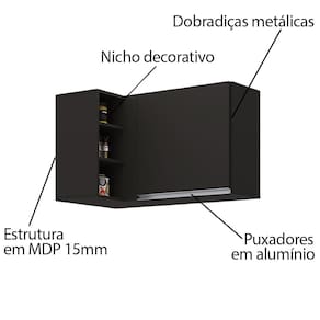 Você está procurando um armário aéreo que combine com a sua cozinha e que aproveite bem o espaço? Então conheça o Armário Aéreo de Canto Reto Austin Preto, da Lumil, um móvel prático e elegante que vai deixar a sua Cozinha mais organizada e bonita.
