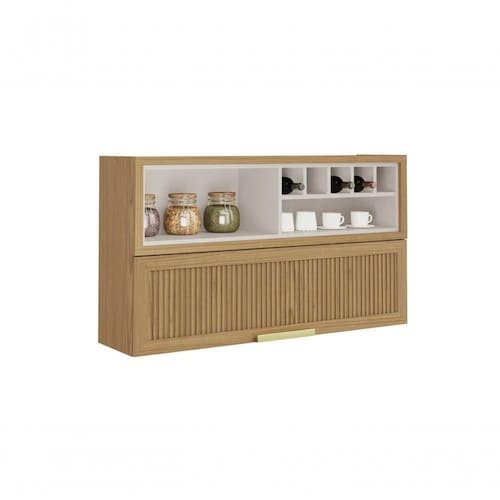 Armário Aéreo De Cozinha 120cm 1 Porta Horizontal Canelada E Nicho Adega New Porto - Itatiaia Freijó/off White O Armário Aéreo de Cozinha Itatiaia 1 Porta 1 Nicho Grafite New Porto é fabricado com materiais de alta qualidade, garantindo durabilidade e resistência. Seu acabamento em MDF confere um toque de sofisticação ao ambiente, combinando perfeitamente com diferentes estilos de decoração. Os puxadores em ABS possuem um design leve e anatômico, proporcionando conforto ao abrir as portas. Além disso, o armário conta com pistão a gás de fácil instalação, que traz suavidade e praticidade ao abrir e fechar a porta.É importante ressaltar que a montagem e instalação do produto não são responsabilidade da Itatiaia. Recomendamos que a montagem seja realizada por um , seguindo as instruções do manual do produto para garantir a correta instalação e funcionamento do armá objetos que aparecem nas imagens são meramente ilustrativos e não acompanham o produto. Além disso, é importante destacar que as cores dos produtos podem sofrer alterações devido às configurações do monitor.