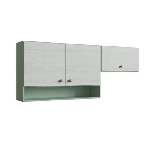 Armário Aéreo 3 portas, um acessório/complemento da sua cozinha, mostrando utilidade, modernidade e beleza com qualidade superior. A linha Atena é modulada e você pode compor o ambiente com sua necessidade, otimizando espaços e organizando sua cozinha. Acabamento em impressão texturizada touch fosco UV, confeccionado em MDP 15 mm e puxadores ABS. Acabamento da Porta: Pintura Texturizada UV Acabamento da Prateleira: Finish Foil Ambiente Principal: Cozinha Complexidade da Montagem: Média: pode ser montado por mais de uma pessoa e/ou necessite de maior conhecimento para montagem Cor: Verde Bellagio/Snow Cor do Produto: Verde Bellagio/Snow Cor Flex: Não Cor Interna: Verde Bellagio Escala de Brilho: Fosco Escala de Brilho da Porta: Fosco Escala de Brilho da Prateleira: Fosco Informações Complementares: 5 kg por prateleira e/ou compartimento Itens Inclusos: 1 Armário, Kit Ferragens e Manual de Montagem Linha ou Coleção: Atena Manual de Montagem e Instalação: https://cdn2.madeiramadeira.com.br/atributo/casamia/1253646-580-7899467135331-manual.pdf Material da Dobradiça/Corrediça da Porta: Metálica Material da Porta: MDP Material da Prateleira: MDP Material do Puxador da Porta: ABS Material Principal: MDP Montagem Flex: Sim Necessita Montagem: Sim Origem do Produto: Nacional Peso: 25.3 Peso Máximo por Prateleira: 5 Possui Espelho: Não Possui Possui Pés: Não Possui Portas: 03 Possui Prateleiras: 02 Recomendações de Uso, Manutenção e Limpeza: Deve ser feita com pano macio e seco ou levemente umedecido com água e sabão neutro. Não devem ser utilizados abrasivos como palha de aço e objetos cortantes. Sapatas Niveladoras: Não Sistema de Montagem: Parafusos e cavilhas Suporta Até (kg): 15 Tipo de Dobradiça/Corrediça da Porta: 35 mm Tipo de Porta: Misto (Bater e Basculante) Tipo de Puxador da Porta: Externo