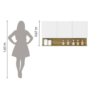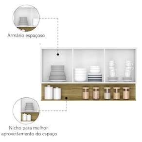 MODELO: Armário Aéreo de Cozinha 3 Portas com Nicho 1,20m Freijó / Branco Line Kits Paraná