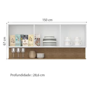 Certifique-se de tudo antes de finalizar a compra, evitando assim futuros desagrados ou imprevistos com a . MEDIDAS:: [ A ] = 67 cm [ L ] = 150 cm [ P ] = 28,6 cm | PESO:: 25,70 kg | PESO SUPORTADO:: 20 kg | PRATELEIRAS SUPORTAM:: 5 kg | NICHO SUPORTA ATÉ:: 5 kg | MODELO:: Armário Aéreo de Cozinha 3 Portas com Nicho 1,50m Line | MARCA:: Kit's Paraná | MATERIAL:: MDP | ESPESSURA DO MATERIAL:: 15mm | ACABAMENTO:: Acabamento em pintura com secagem em luzes UV | PORTAS:: 3 | TIPOS DE PORTAS:: Bater | PRATELEIRAS:: 1 | NICHOS:: 1 | PUXADOR:: Usinado 45 | DOBRADIÇAS:: Metálicas | DIFERENCIAL:: Sistema avançado de abertura, sendo possível a abertura sem puxador | SISTEMA DE MONTAGEM:: Pregos, parafusos e cavilhas | RECOMENDAÇÕES DE LIMPEZA:: A limpeza do móvel de ser efetuada somente pano macio e moderadamente umedecido com água pura ou solução com sabão neutro. Evitar mover o produto com utensílios dentro do mesmo. | ITENS INCLUSOS:: 1 Armário de Cozinha Completa, 1 Manual de montagem, 1 Kit Parafusos | :: 3 Meses | AVISO:: A Esplanada Móveis se responsabiliza pela dos produtos adquiridos até a porta de entrada ou portaria do indicado, se a portaria do condomínio permitir, as são efetuadas no piso térreo e é de responsabilidade do cliente. Cor: Madeir/Bra