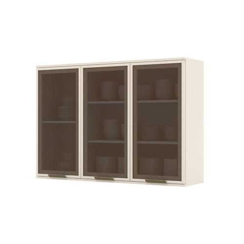 Armário Aéreo De Cozinha 3 Portas Com Vidro Connect Henn Off White Produzida em MDF, a colecao une o que ha de mais conceitual em tendencias de design e solucoes inteligentes, permitindo a versatilidade necessaria para criar a cozinha dos seus sonhos. Com uma modulacao completa, com mais de 25 itens, que permite realizar as mais diversas composicoes de projetos, desde ambientes compactos, a espacos maiores que vao tornar sua cozinha mais pratica e muito mais bonita. As gavetas sao com corredicas telescopicas, que permite abertura maior das mesmas, facilitando o acesso aos objetos. Possui acabamento em pintura UV, revestimento que assegura qualidade e durabilidade ao produto. A linha Connect oferece muitas possibilidades e criam combinacoes unicas, exatamente do seu jeito. CARACTERISTICAS GERAIS: Estilo: Moderno Linha: Connect Ambiente Principal: Cozinha Marca: Henn Origem: Nacional Garantia do Fornecedor: 3 Meses Itens Inclusos: 1 Armario de Cozinha e instrucao de montagem