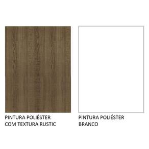 O acabamento da estrutura é em amadeirado Rustic e a porta é branca. É feito em Pintura Poliéster com 7 camadas protetoras aumentam a resistência e durabilidade do móvel.