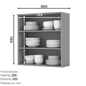 FICHA TÉCNICA: Acabamento: Pintura UV Texturizada Cor Interna: Na versão Branco HP é Trama Branco e na versão Cinza é Trama Escala de Brilho: Fosco Qtd. Portas: 2 Und. Tipo Porta: Bater Material da Porta: MDF com Vidro Material do Puxador Porta: Metal Zamac Material da Dobradiça: As portas possuem dobradiças de 35 mm com amortecimento, garantindo um fechamento suave. Qtd. Gavetas: Não possui Qtd. Prateleiras: 2 Und. Material da Prateleira: MDF Peso Máximo por Prateleira: Cada prateleira suporta até 8 Kg, a carga deve ser distribuída uniformemente. Possui vidro: Sim Material Principal: MDF Material do Fundo: MDF Pode ser montado suspenso: Sim Produto Suporta até -Kg-: 24 Kg Peso Produto Montado -Kg-: 22 Kg Medidas Montado -A x L x P-: 83 X 80 X 32,5 Cm
