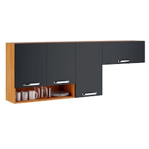 Armário Aéreo de Cozinha em Madeira 3 Portas 1 Nicho Cinamomo e Grafite Vegas - Itatiaia