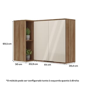 Especificações da modulação: Medidas totais: Largura: 94 cm | Altura: 69,5 cm | Profundidade: 52 cm Peso total: 28Kg Material do produto: MDP