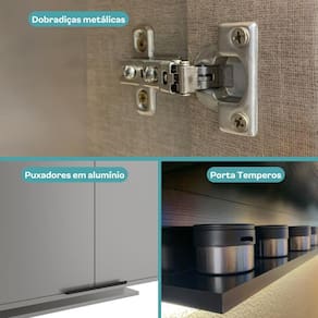 A linha de cozinha Miami oferece a possibilidade de montagens personalizadas, resultando em um maior espaço para armazenamento e uma organização eficiente. Nossos produtos são elaborados com matéria-prima de alta qualidade, como MDP e MDF, puxadores de alumínio, pintura UV e revestimento interior com proteção, assegurando durabilidade e resistência aos produtos.