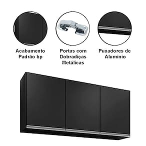 Armário Aéreo de Geladeira 3 Portas 120 cm Valência - Preto