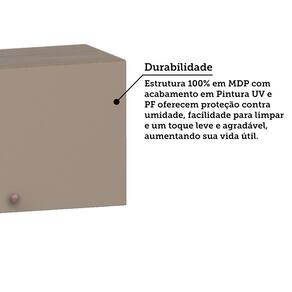 Estrutura: MDP 15mm Acabamento da Caixaria/Corpo: Pintura UV Acabamento das Portas/Frontal: PF Quantidade e Tipo de Portas: 2 Bater Tipo de Dobradiças: Metálicas Slowmotion Tipo de Puxadores: Ponto cobre Garantia: 3 meses Sistema de Montagem: Cavilhas e Parafusos Itens inclusos: Armário Aéreo, manual de montagem, ferragens e acessórios
