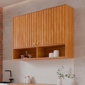 Material da estrutura: Tampos e Laterais em MDF 15mm; Prateleira e portas em MDF 12mm com ripado em MDF em 6mm;