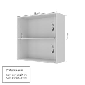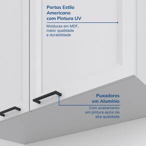 Informações Complementares: Portas de bater almofadadas/molduradas em MDF, dobradiças de 35mm, prateleira interna, puxadores em alumínio.