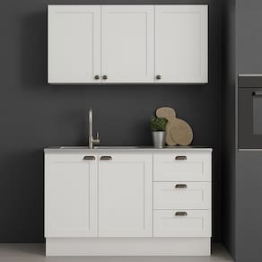 Cozinha com acabamento em pintura UV texturizada, com portas e gavetas montadas em MDF BP melanina, o que torna o produto ainda mais charmoso e duradouro. Acabamento da Prateleira: Pintura Escala de Brilho da Prateleira: Fosco Acabamento da Gaveta: BP Escala de Brilho da Gaveta: Fosco Material do Puxador da Gaveta: ABS Acabamento da Porta: Pintura Escala de Brilho da Porta: Fosco Material do Puxador da Porta: ABS Acabamento dos Pés: Pintura Acompanha Rodapé Decorativo: Sim Acompanha Tampo: Não Altura dos Pés: 17 cm Altura Máxima dos Pés: 17.0000 Ambiente Principal: Cozinha Balcão Suporta Pia: Sim codigo_ean: 7900288218308 Complexidade da Montagem: Baixa: pode ser montado por uma pessoa sozinha Cor: Branco Fosco Cor do Produto: Branco Fosco Cor Flex: Não Cor Interna: Branco Escala de Brilho: Fosco Espessura do Material da Estrutura: 15 mm Gaveta com Chave: Não Informações Complementares: Armário Aéreo e Balcão 120cm 100%mdf Estilo Provençal Americano Itens Inclusos: 1 Cozinha Compacta, Kit Ferragens e Manual de Montagem Linha ou Coleção: Provençal Manual de Montagem e Instalação: https://product-hub-prd.madeiramadeira.com.br/429501128/documents/b484d01e-7ef2-42c6-8850-ad823f3bef88312221773417545824929011.pdf Marca: Genialflex Material da Corrediça: Metálica Material da Dobradiça/Corrediça da Porta: Metálica Material da Gaveta: MDF Material da Porta: MDF Material da Prateleira: MDF Material do Fundo: MDF Material dos Pés: MDF Medida de cada item (A x L x P): Balcão (85x120x50,5) Aereo (66x120x31,5) modular: Sim Montagem Flex: Não Necessita Montagem: Sim O Balcão Acompanha Pia: Não Origem do Produto: Nacional Pés Reguláveis: Não Peso: 61,58 kg Peso Máximo por Gaveta: 4 kg Peso Máximo por Prateleira: 4 kg Possui Pés: Rodapé Possui Portas: Sim Possui Prateleiras: Sim Possui recorte para Cooktop: Não Possui Rodízio: Não Possui Vidro: Não Produto Montado: Sim Recomendações de Uso, Manutenção e Limpeza: Limpar com pano umedecido e numero das peças retirar com alcool Sapatas Niveladoras: Não Sistema de Montagem: Parafusos e Cavilhas e minifix Suporta Até (kg): 40 kg Tamanho Indicado da Pia: 120 Tamanho Indicado do Tampo: 120 Tamanho Indicado do Tampo ou Pia: 120 Tipo de Corrediça da Gaveta: Metálica Telescópica Tipo de Dobradiça da Porta: Simples Tipo de Dobradiça/Corrediça da Porta: Simples Tipo de Puxador da Gaveta: Externo Tipo de Puxador da Porta: Externo