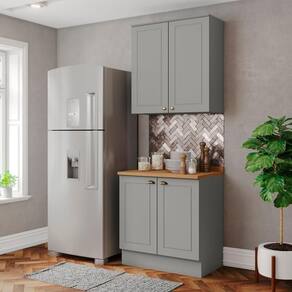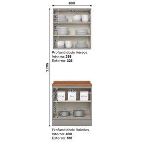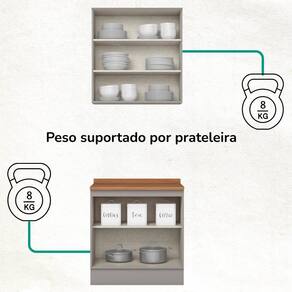 No estilo provençal com conceito inspirado nas clássicas cozinhas . O Armário Aéreo com Balcão com tampo de 80 cm, com estrutura feita 100% MDF de 15mm (fundo com 3mm, e tampo em MDP 25mm) , portas com dobradiças metálicas 35 mm com amortecimento e fechamento suave, frentes com usinagem em baixo relevo, enquanto os puxadores são em metal zamac, sua interna conta com 3 prateleiras espaçosas, cada uma suportando até 8 kg. Acabamento em pintura UV texturizada que proporciona beleza e facilidade ao limpar. Este móvel chegará na sua casa separado em 03 volumes.