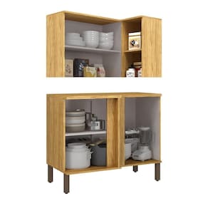 O Armário Aéreo e Balcão de Canto 98 cm é a solução perfeita para quem deseja otimizar o espaço com praticidade. Com um design eles podem ser montados em ambos os lados, garantindo uma adaptação perfeita à sua cozinha. Fabricados em MDP de 15 mm, oferecem durabilidade. Seu acabamento em pintura UV texturizada oferecem um toque sofisticado e maior proteção contra desgastes. Os puxadores em alumínio trazem elegância ao design, enquanto os pés com regulagem permitem ajustes para maior estabilidade. Suas portas são equipadas com dobradiças metálicas enquanto o Aéreo é composto com Pistão a Gás para maior segurança ao abrir e fechar. Este móvel chegará na sua casa separado em 02 volumes.